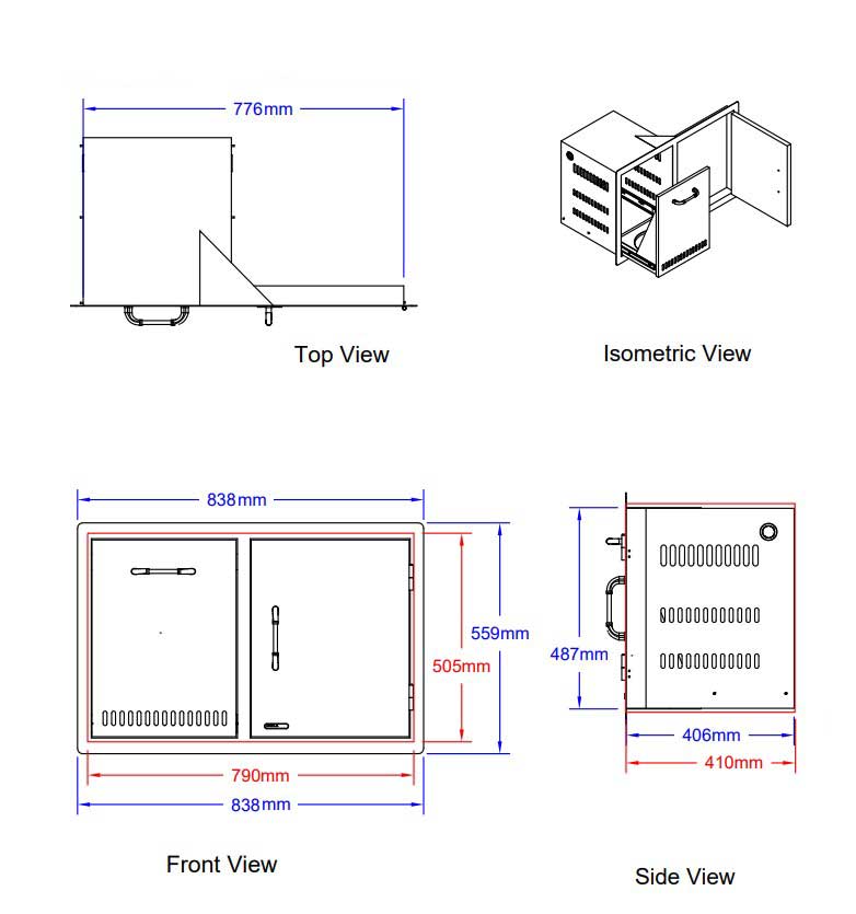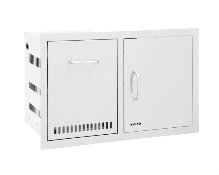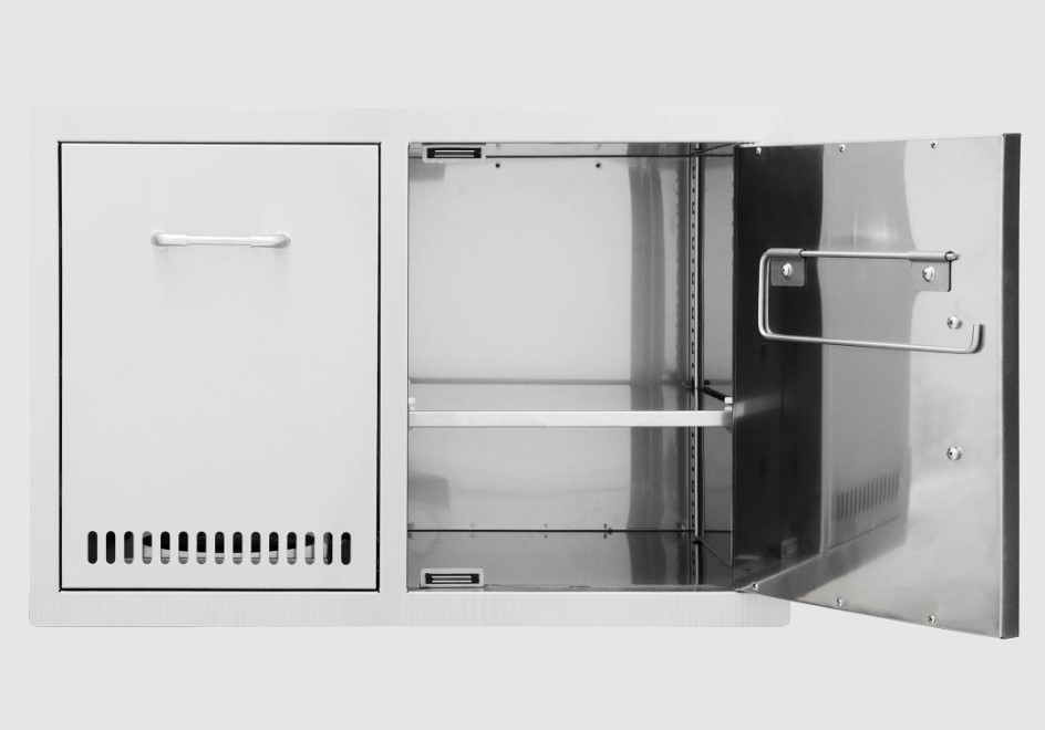 Made from premium 304 stainless steel, this combo includes an enclosed drawer for a small gas cylinder or trash bin, along with double-lined doors for convenient and secure storage in your outdoor kitchen.