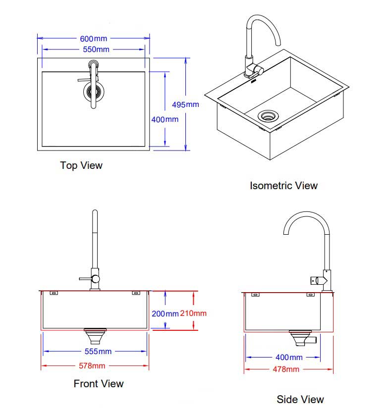 BULL Extra Large Sink 55x40x20cm(Internal) + Single Lever H&C Faucet